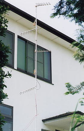 ●これはSA−231を4本使用したものです。 SA−231で受信をしてプリアンプで40db増幅 して再びSA−231で送信しているものです。 送信と受信のアイソレイションはビームアン テナの特性を利用したものです。90度で 約40dbから約70dbは取れます。 又送信アンテナと受信アンテナの間隔は、5λ、 約1m上下に隔てています。 それを写真 の様に1本マストに組み立てています。 ハンデートランシーバーで送信受信が出来ます。 この状態ですと1階にいながら2階から 電波を出しているのと同じになります。 これは山の谷間とか地下室などで、周波数を 変えないで電波の向きを変える、レピーターと して利用出来ます。 ●どなたか情熱のある人挑戦してみませんか。 |